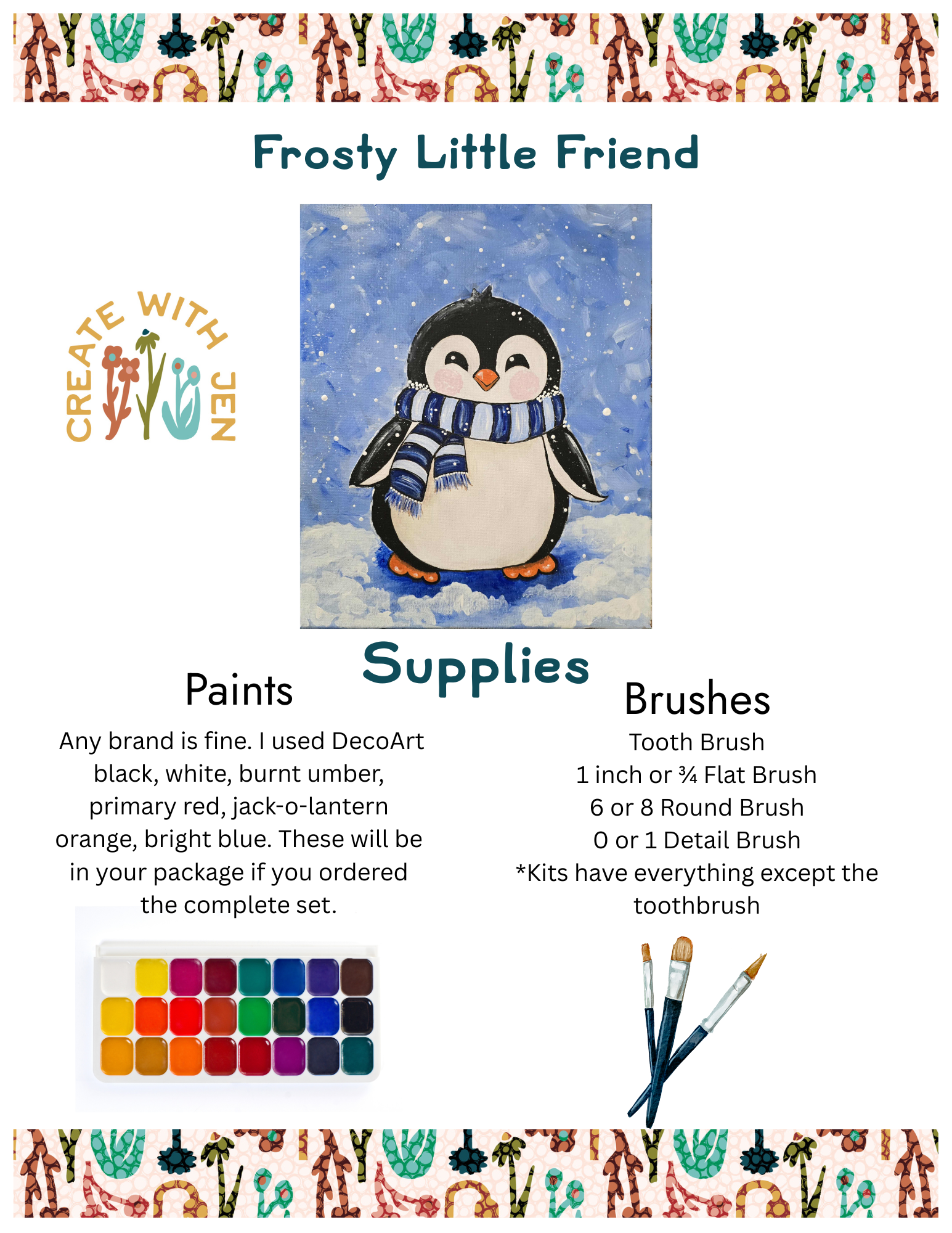 Categories: Art Work Originals Prints Create with Jen Online Courses Art Work / Flurries of Encouragement - At Home Art Kit - 11x14 Canvas (includes access code) from $25.00 Frosty Little Friend At Home Art Kit 11x14 Canvas (includes access code) from $25.00 Winter Mushroom Cottage At Home Art Kit 11x14 Canvas (includes access code) from $25.00